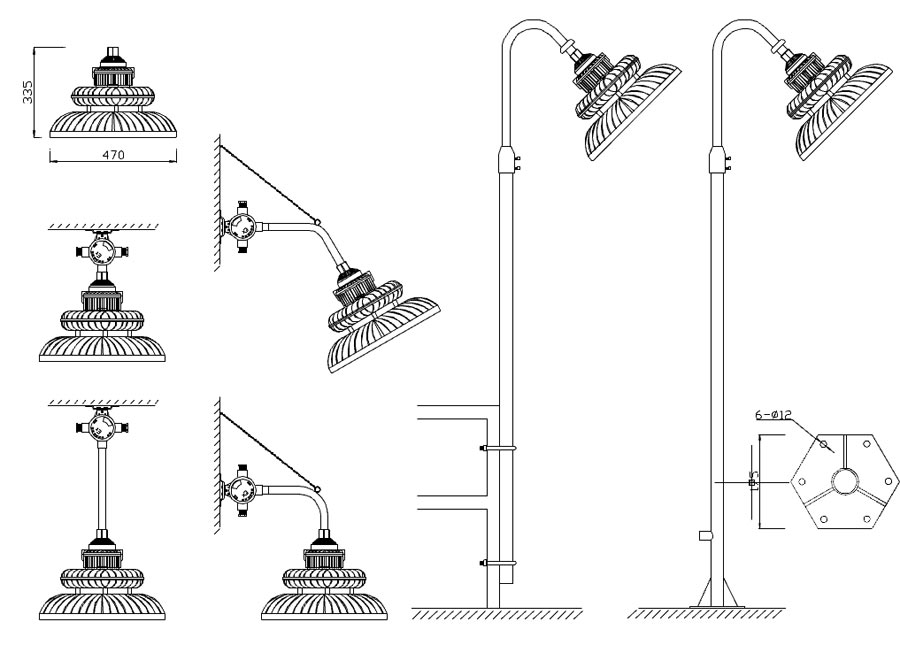 安装便捷,有吊杆式、吸顶式、壁式、法兰式、护栏式等多种安装方式;