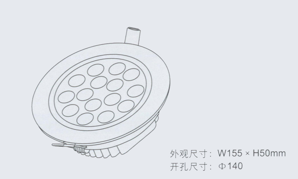 产品型号 输入电压 LED功率 LED数量 光通量 外观尺寸 开孔尺寸