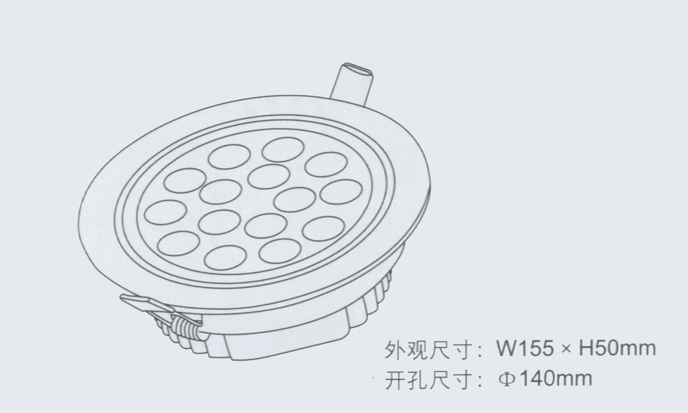 产品型号 输入电压 LED功率 LED数量 光通量 外观尺寸 开孔尺寸