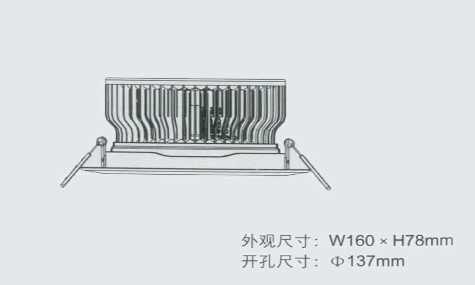 产品型号 输入电压 LED功率 LED数量 光通量 外观尺寸 开孔尺寸