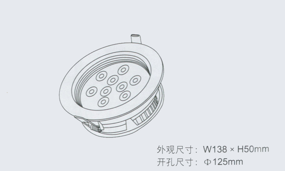 9x1W 9 1035lm W138mm x H50mm ∅125mm