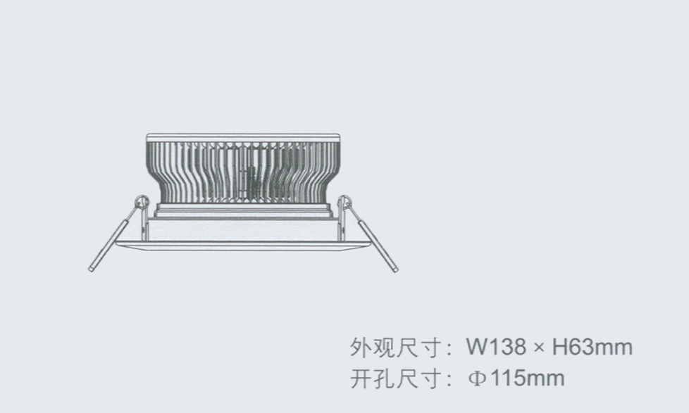 产品型号 输入电压 LED功率 LED数量 光通量 外观尺寸 开孔尺寸