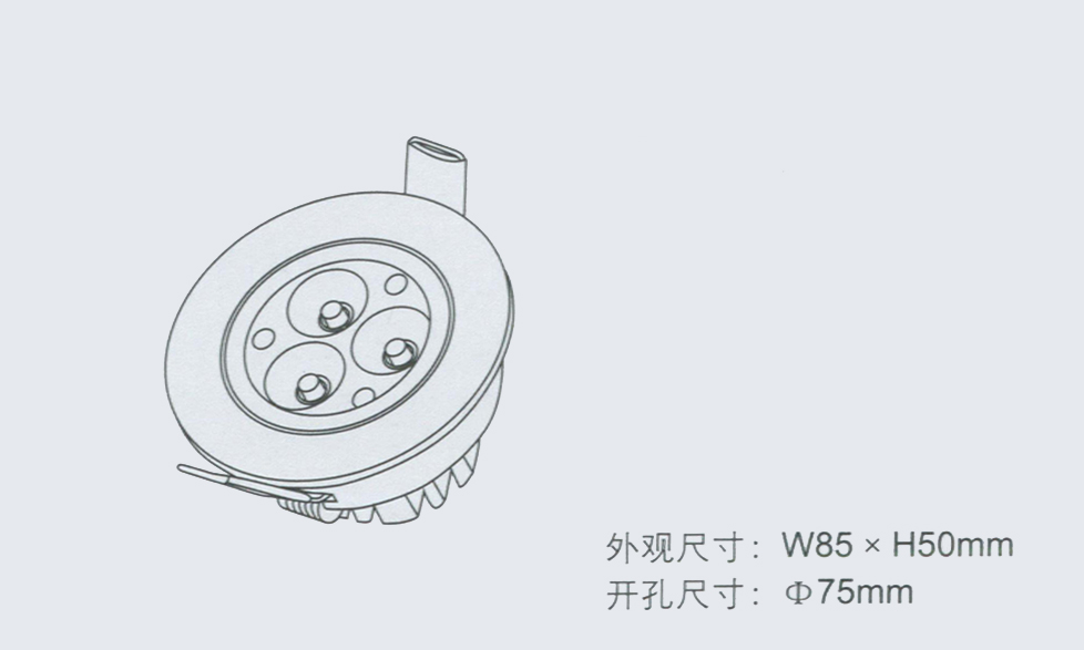 产品型号 输入电压 LED功率 LED数量 光通量 外观尺寸 开孔尺寸
