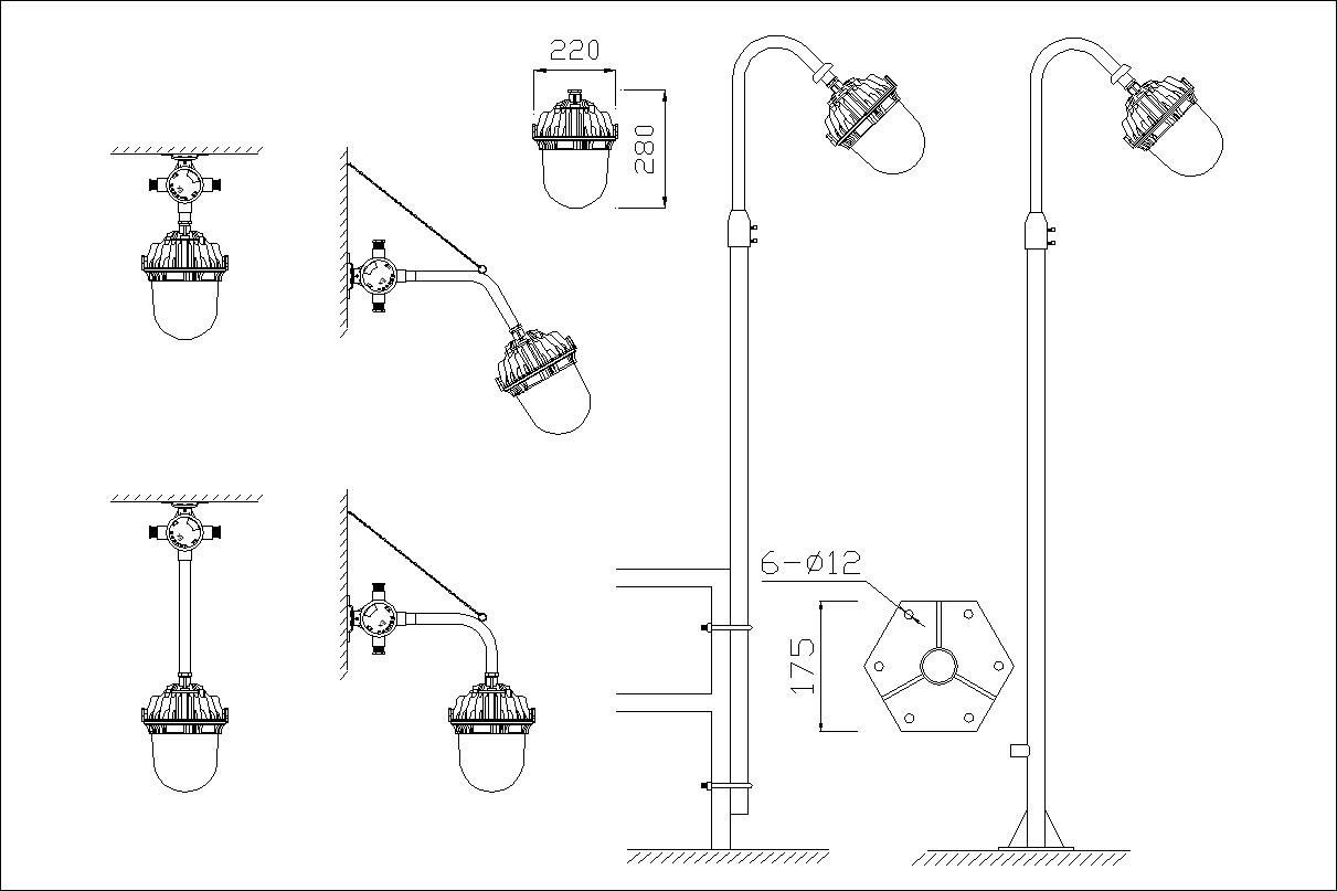 适用于石油石化,矿业、治金,船舶,海上石油平台,油站,油库、气站,钻井,井场,海上石油平台各种装置区,管线区,车间,中转站,联合站油泵房、道路等易燃易爆场所作固定照明。