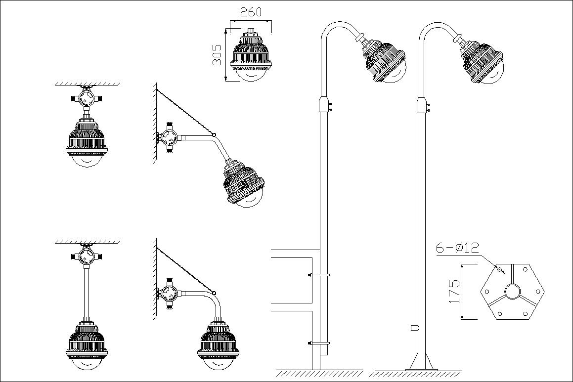 适用于石油石化,矿业、治金,船舶,海上石油平台,油站,油库、气站,钻井,井场,海上石油平台各种装置区,管线区,车间,中转站,联合站油泵房、道路等易燃易爆场所作固定照明。
